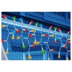 Outdoor, Led LED Icicle Light Set 70 multi-coloured LED bulbs End to end Indoor/outdoor use 9 foot lighted length White wire 4" lead wire and 4" tail wire INCLUDES: 70 LED lights 2 spare bulbs