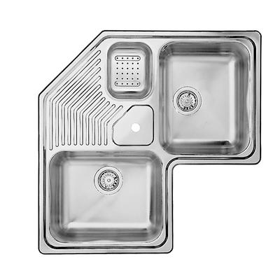 This unique corner sink was designed and made in Germany by premium-sink manufacturer Blanco. Made of premium stainless steel, the sink features 2 equal-sized bowls and a smaller prep bowl with colander included. 18 gauge premium stainles... Read more