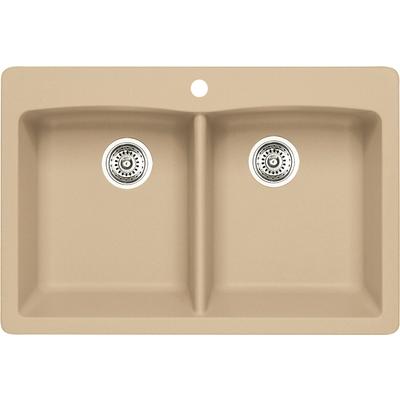 This double bowl topmount sink from BLANCO is made of 80% natural granite. Rear positioned drain holes maximize usable bowl and cabinet storage space. 3-1/2" stainless steel strainers are included. 80% Natural Granite Colour: Biscotti Bowl Depth:... Read more
