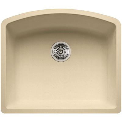 This single bowl undermount sink from BLANCO is made of 80% natural granite and features an enormous single bowl to accommodate bulky items. 3-1/2" stainless steel strainer is included. 80% Natural Granite Colour: Biscotti Bowl Depth: 10″ Min... Read more