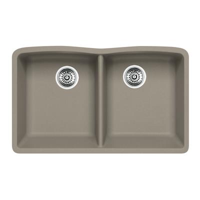 This double bowl undermount sink from BLANCO is made of 80% natural granite. Rear positioned drain holes maximize usable bowl and cabinet storage space. 3-1/2" stainless steel strainers are included. 80% Natural Granite Colour: Truffle Bow... Read more