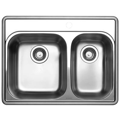 This 1 1/2 bowl drop-in sink features 8 and 7-inch bowl depths and is made of 20 gauge stainless steel. Rear-positioned drain holes offer maximum usable bowl and cabinet storage space, while the deep recessed sink rim prevents spillovers. Models are... Read more