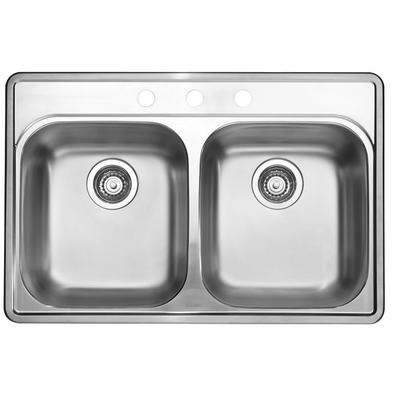 This double bowl drop-in sink features 8-inch bowl depths and is made of 20 gauge stainless steel. Rear-positioned drain holes offer maximum usable bowl and cabinet storage space, while the deep recessed sink rim prevents spillovers. Models ar... Read more