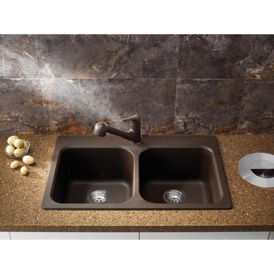 This double bowl drop-in sink is made of 80% natural granite and features two large, equal-sized bowls and rear positioned drain holes maximize usable bowl and cabinet storage space. 3-1/2" stainless steel strainers are included. 80% natura... Read more