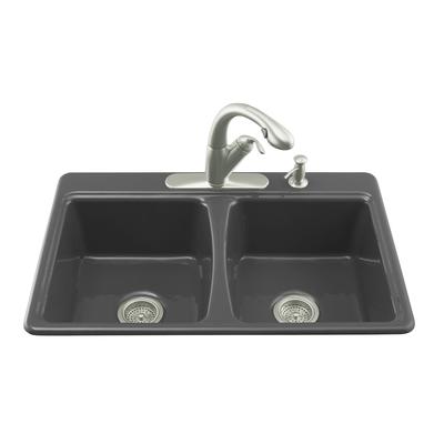 The Deerfield kitchen sink is a modern classic with deep, matching double basins. Constructed of durable KOHLER(R) Cast Iron, its clean, simple lines feature rounded corners and a graduated interior basin edge. This self-rimming model features... Read more