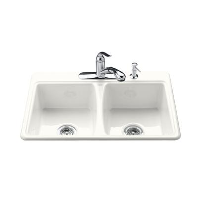 The Deerfield kitchen sink is a modern classic with deep, matching double basins. Constructed of durable KOHLER(R) Cast Iron, its clean, simple lines feature rounded corners and a graduated interior basin edge. This self-rimming model features... Read more