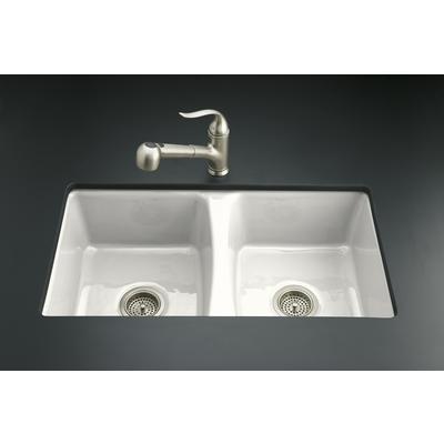 The deerfield kitchen sink is a modern classic with deep, matching double basins. constructed of durable Kohler(r) cast iron, its clean, simple lines feature rounded corners and a graduated interior basin edge. This undercounter model features... Read more