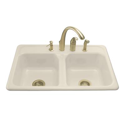 The Delafield kitchen sink offers exceptional quality and KOHLER(R) Cast Iron durability in a conventional design. The sink has double equal basins of 8 in. depth and four-hole faucet drilling, and is intended for self-rimming installations of a... Read more
