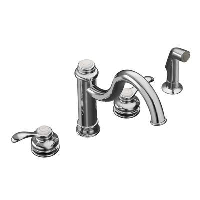 The classic design of Fairfax(R) kitchen sink faucets provides enduring style and superior performance. The optimal spout reach and height of this high spout kitchen sink faucet with matching sidespray and lever handle offer added workspace fo... Read more