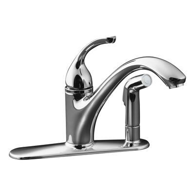 Kohler Forté single-control kitchen sink faucet with sidespray in escutcheon and lever handle view