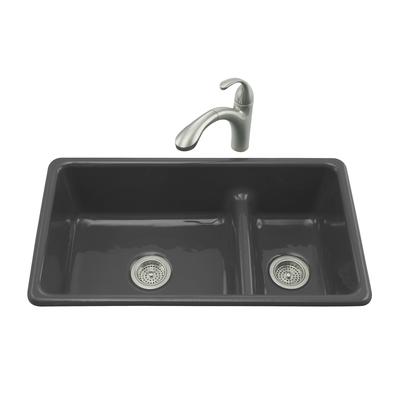 Kohler Iron/Tones Smart Divide Kitchen Sink in Black Black view