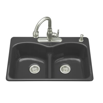 Kohler Langlade Smart Divide Self-Rimming Kitchen Sink in Black Black view