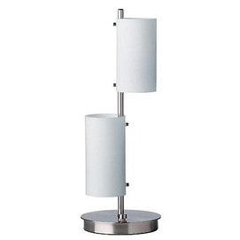 21'' height metal frame white opal glass shades 3-way hi/low/off switch, hi/low switch mounted on base takes two 60-watt medium base bulb (not included) 8'' diameter base satin chrome finish