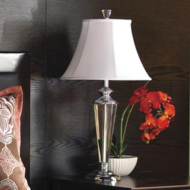 Save 10% when you buy 2 or more lamps from same Polished Chrome Table Lamp Collection polished chrome accents fabric bell shade glass finial takes 100-watt trilight bulb (not included)