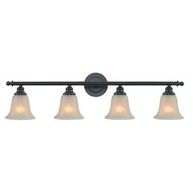 heirloom bronzetone finish metal 6'' diam. frosted glass shades 27'' w. x 9'' h. requires four 60-watt medium base bulbs, not included
