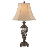 Oil-rubbed bronze finish Ivory fabric shade Dimensions: 27" (68.6 cm) tall, 14" (35.6 cm) shade Replacement bulb: one 150W (maximum) medium base (52-5462) (not included)