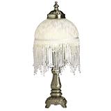 Victorian style lamp suits most decors Bronze finish base and a glass shade with glass beaded fringe On/off switch on the cord Takes an incandescent bulb with a max. wattage of 25 - not included 6 x 13-1/2" (15 x 34 cm)