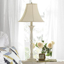Save 10% when you buy any 2 or more Antiqued White Wash Collection lamps white wash finish over metal construction bell-shaped, soft-back 12" diam. shade in ivory uses 60-watt (max.) medium-base bulb (not included) on/off socket switch som... Read more