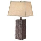Textured finish Beige, rectangular fabric shade Dimensions: 23.5" (60 cm) tall, 13" (33 cm) shade Replacement bulb: one 100W (maximum) medium base (e.g., 52-5451 or 52-5474) (not included)