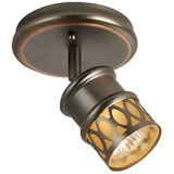 Track ceiling fixture. Single light. Adjustable, champagne marble glass shade. Multiple decorative shade options, metal or glass, or metal and glass. Oil-rubbed bronze finish. (Requires one 50-W, GU10 type lightbulb, not included.) Available i... Read more