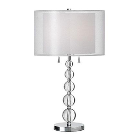 Shade within a shade - outside laminated organza with inside white linen shade Polished Chrome column and accents 31" High Hi/lo double pull chain switch - bulbs switch independently