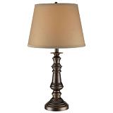Dark brown finish Mocha empire hardback shade Dimensions: 27.25" H (69 cm), 15" (38.1 cm) shade Replacement bulb: one 100W (maximum) medium base trilight (52-5488) (not included)