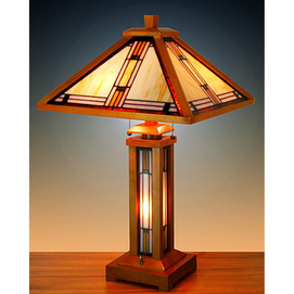 Fine Art Lighting Mission-Style Stained Glass Table Lamp (M813) - Beige/Green view