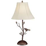 Decorative table lamp with greyish-gold finish Features off-white fabric shade and sparrow detail on base Dimensions: 14.75 w x 28" h (37 w x 71 cm) Requires one 100W (max) medium base (52-5451) or 23W CFL bulb (52-5121) (not included)