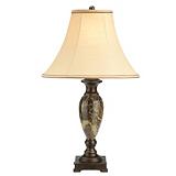Carmella table lamp is styled with a hand painted finish with a knock down taupe shade Requires one 60W type A medium base bulb 15" W x 25" H (38 x 64 cm) Bulb is not included
