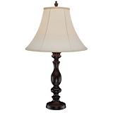 Decorative table lamp with black painted finish Features flared beige fabric shade Dimensions: 26 h x 14" w (66 h x 36 cm w) Requires one 60 W A bulb (52-5585) (not included)