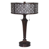 Table lamp, dark bronze with fancy drum shade. Glass diffuser. (Requires 3 x 60-W, A19 type lightbulbs, not included.)