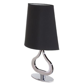 Contemporary and sleep the Alexis table lamp is perfect for your modern home. 26-3/8'' chrome with black accent table lamp (4 3/8'' x 10 5/8'')top x (7 7/8'' x 14 5/8'')bottom oval white shade on/off line switch 60W max, type A & 23W max compact... Read more