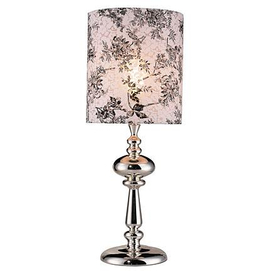 metal with a polished chrome finish 27.5 diam. black and white drum-shaped lace shade on/off switch uses one 60-watt medium-base bulb, not included 69 cm high