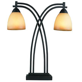 The Galleria lamp creates a bold statement in any room. 21- 1/2'' brown with copper highlights table lamp 2'' x 5'' diameter x 4 7/8'' high x 4mm thick beige and brown tone glass shades high/low dimmer line switch 2 x 60W max, type A lightbulbs... Read more