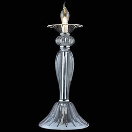 polished chrome finish table lamp with Italian design blown glass uses three halogen 20W type 'JC' G4 bulbs and includes a 6 ft. wire 9.50'' l. x 14.50'' w. x 10.00'' h.