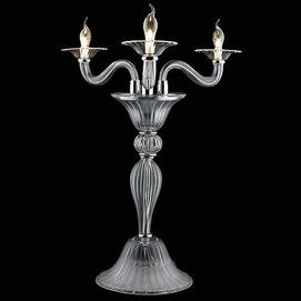 polished chrome finish table lamp with Italian design blown glass uses three halogen 20W type 'JC' G4 bulbs and includes a 6 ft. wire 12.25'' l. x 19.00'' w. x 12.00'' h.