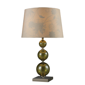 An intriguing color scheme and eye-catching patterns combine to give this table lamp a surreal aura and an energetic character. cone shade shape off-white faux silk with patterned liner shade shape steel and glass material green smoked glass and... Read more