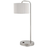Table lamp. 20 in. high. With an on/off switch at the base. Made of metal. Fabric-made silky white shade. Chrome finish. (Lightbulb not included.)