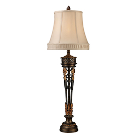 The ornate styling of this table lamp exemplifies old-world, classical elegance and refined taste. round bell shade shape with cream liner and 2" side pleated gallery at bottom cream shantung shade material lucia bronze finish 3 way 100 wat... Read more