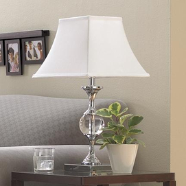 Save 10% when you buy 2 or more lamps from the same 'Peyton' Lamp Collection 25" high 12" shade uses 100-watt (max.) trilight bulb steel and glass ball lamp square bell-shaped fabric shade white shade trilight switch chrome finish bulbs not... Read more