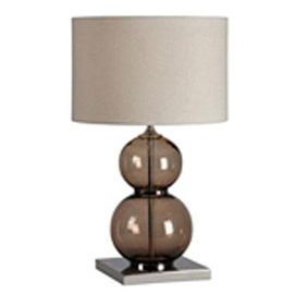 Ren-Wil's innovative lighting collection is great for accenting, dramatizing or setting the mood in any room. Off-white linen hard back drum shade. Tinted blown glass body. Chrome plated base. European shade. Clear cord with a switch. Height... Read more