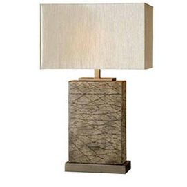 Ren-Wil's innovative lighting collection is great for accenting, dramatizing or setting the mood in any room. Beige silk hard back shade. Crackled leather body with satin nickel plated base and neck. European style shade. Clear cord. cordo... Read more