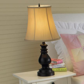 Save 10% when you buy 2 or more Textured Brown-finish Table Lamps Only at Sears! metal bell-shaped, soft-back, taupe silk-like fabric shade trilight switch takes one 150-watt (max.) trilight bulb; not included 25" high some assembly required