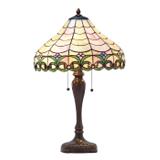 Traditional styling with rubbed coffee finish on stem 16" multicoloured, scalloped Tiffany shade made of real glass 276-piece count for shade Bulb sold separately