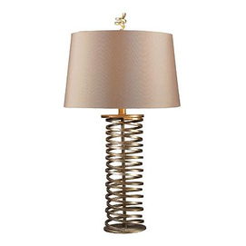 The Trendsitions table lamp is made of heavy gauge, hand forged iron. The cylindrical design of this piece continues though to the finial. The finish of the lamp is santa fe muted gold which is compliments by the milano taupe shade.