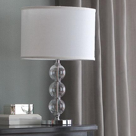 Save 10% when you buy any 2 or more 'Trio' Lamps glass and metal construction white fabric on styrene drum shade on/off switch uses one 100-watt medium-base bulb; not included 12" diam. x 20" h.