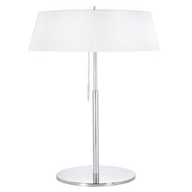 22'' lamp metal with satin chrome or oil brushed bronze finish crystal pleat white shade uses two 60 watt medium base bulbs (not included) pull chain switch