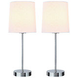 Set of 2 table lamps. 15.55 in. High. Made of metal and fabric. Chrome finish and white. Requires two 40-W, type E26 lightbulbs (not included). # NOT AVAILABLE IN WESTERN CANADA. #