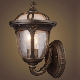 this traditional late 19th century inspired collection features premium sold cast aluminum. The clear hand tooled hammered glass center body is accentuated by hazlenute bronze finished metalwork. Decorative looped scroll work graces the translucen... Read more