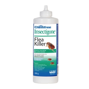 Flea/Tick Products Effective long lasting flea control powder For use indoors or outdoors Kills fleas, cockroaches, earwigs, ants, silverfish, crickets, millipedes, and centipedes